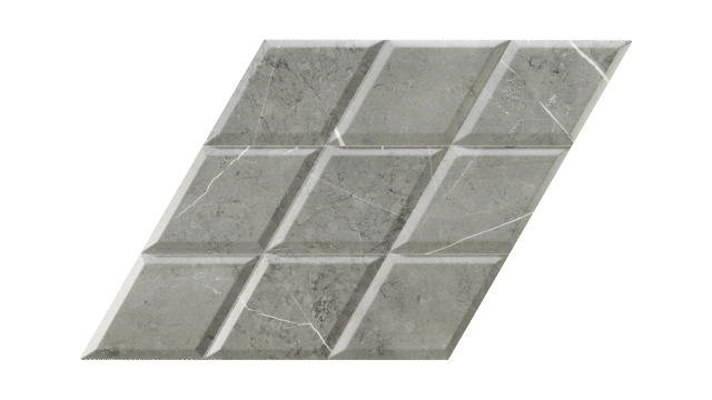 西班牙進口花磚「DIAMOND」如同它的名稱(鑽石)一樣,特殊的菱形造型搭配細膩的大理石紋路,在眾多的大理石紋設計中創造出其獨特的品味,除了一般的地壁磚,還包含了立體的倒角磚、九宮格的馬賽克造型壁磚,以及左、右對稱的箭形圖案設計,能單一使用,還可混合搭配,創造出屬於獨特又豐富的美學概念。